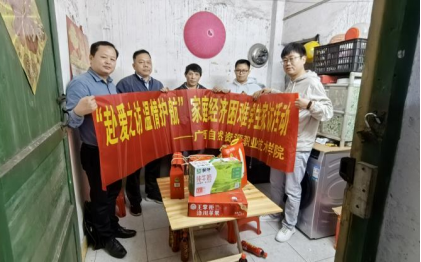 第一组向群雄主任带领机电工程系廖永胜老师、李盼盼老师、金嵘老师到达南宁市江南区,对黄杰同学进行家访慰问。了解学生家庭经济状况并宣传国家资助政策,勉励家长克服困难,坚定信心,全力配合学校完成学生的培养工作。