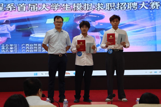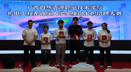 2024年5月23日晚,广西自然资源职业技术学院机电工程系首届大学生模拟求职招聘大赛于图书馆一楼报告厅正式开赛。招生就业中心马豪发老师、美的智能制造产业学院专任教师包创军老师、机电工程系专任教师廖永胜老师、周仕城老师和蒋胜良老师出席并担任评委。